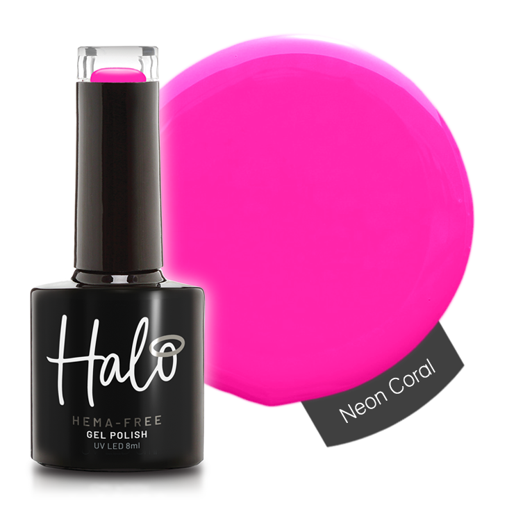 2. Paint an outline around the nails with a liner brush and cure. We used HGP Neon Coral.