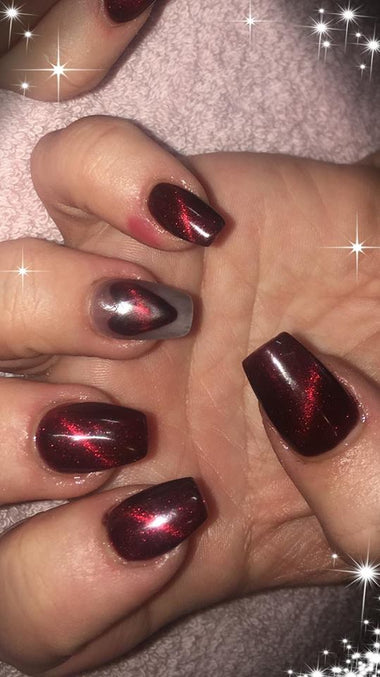 Add instant drama to your gel polish collection with Malice, a shiny red shade that’s bold, captivating and versatile. This deep red hue is perfect on its own, or use it with the Halo Magnet to create a stunning cat eye effect that shimmers with every movement.