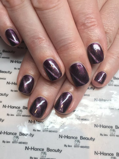 Meet Myrrh, a captivating shiny purple shade that creates an elegant cat eye effect when used with the Halo Magnet. Whether you're creating a statement manicure or subtle shimmer, this gel polish adds a high impact finish to every set.
