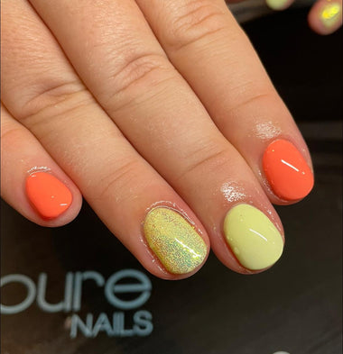 5. Use Halo Elite Yellow Block (220 Grit) to remove any stubborn bits of gel. Apply Halo Citrus Crush Cuticle Oil to nourish.