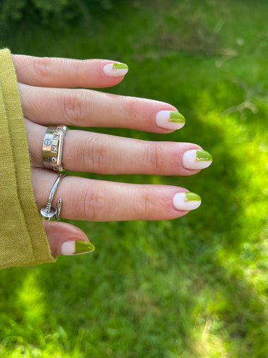 White and green nail art using the Halo Gel Polish shade  'Jungle'