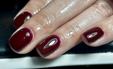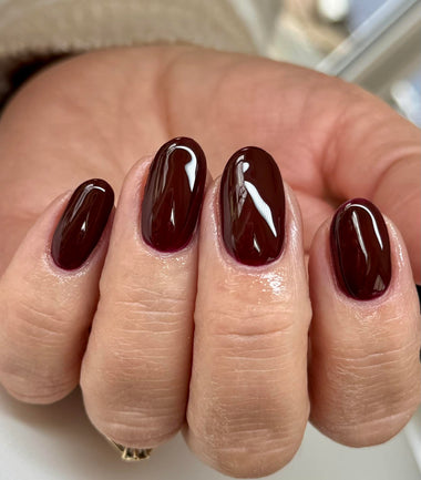 A deep, dark red with a sophisticated black undertone, creating an intense and dramatic finish that exudes mystery and elegance.